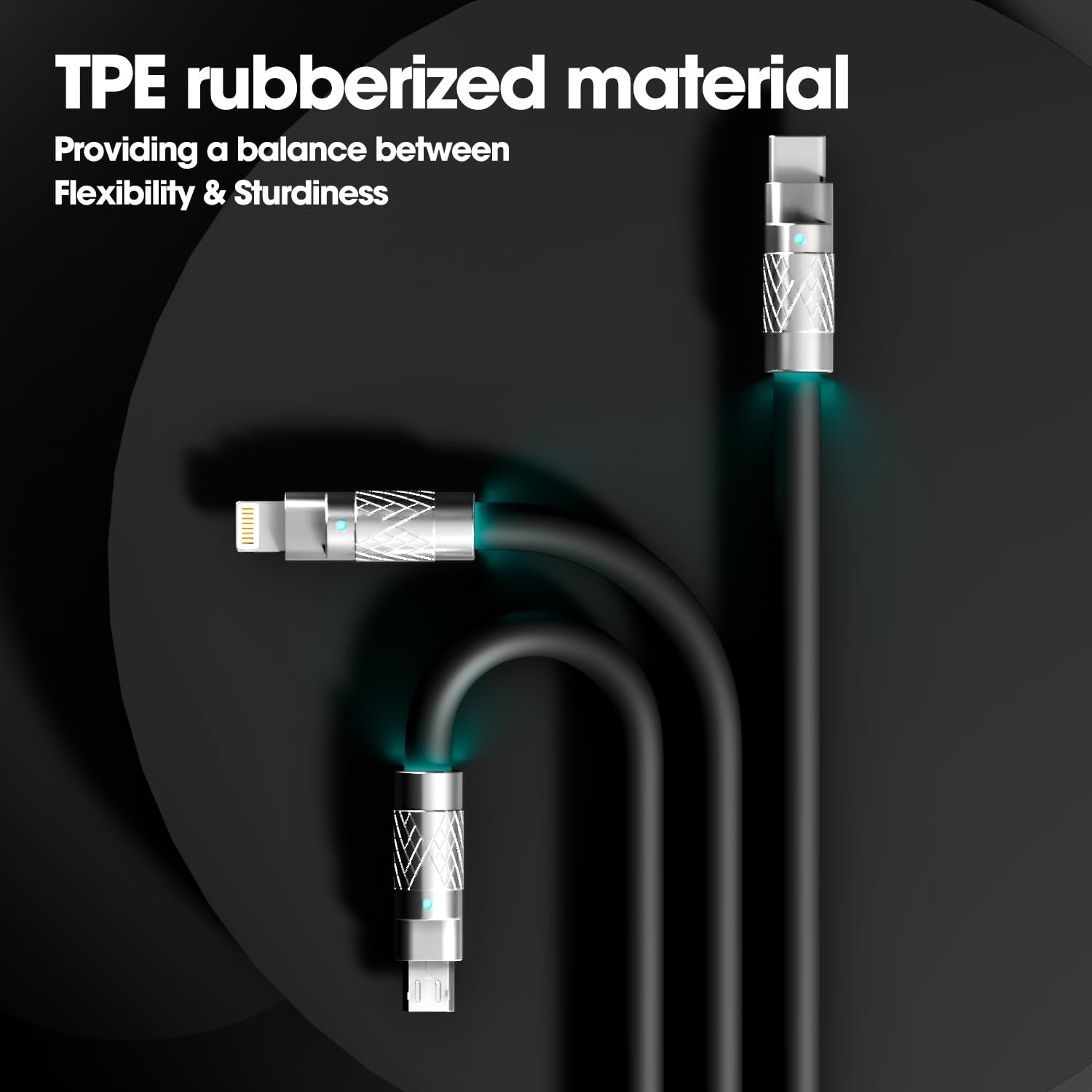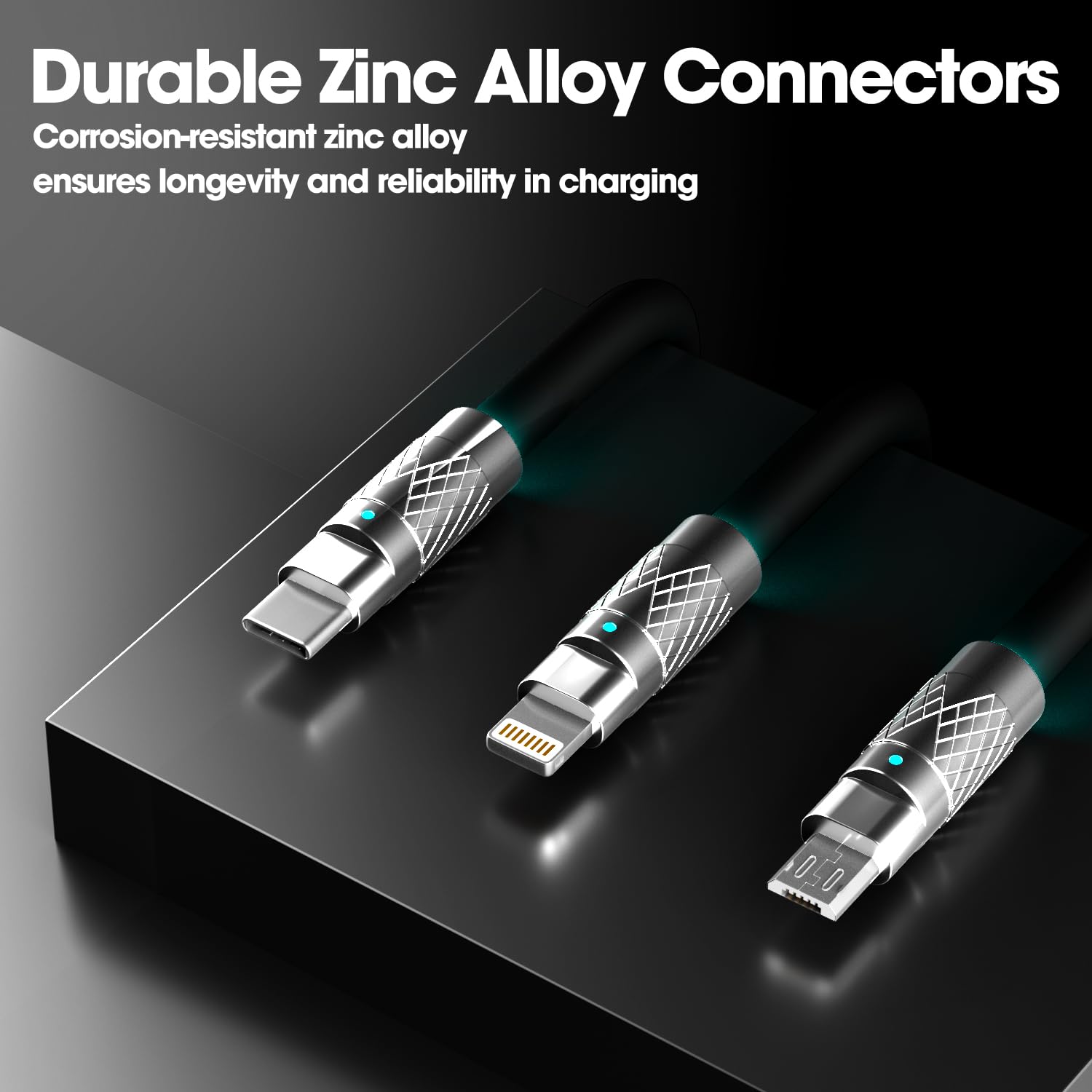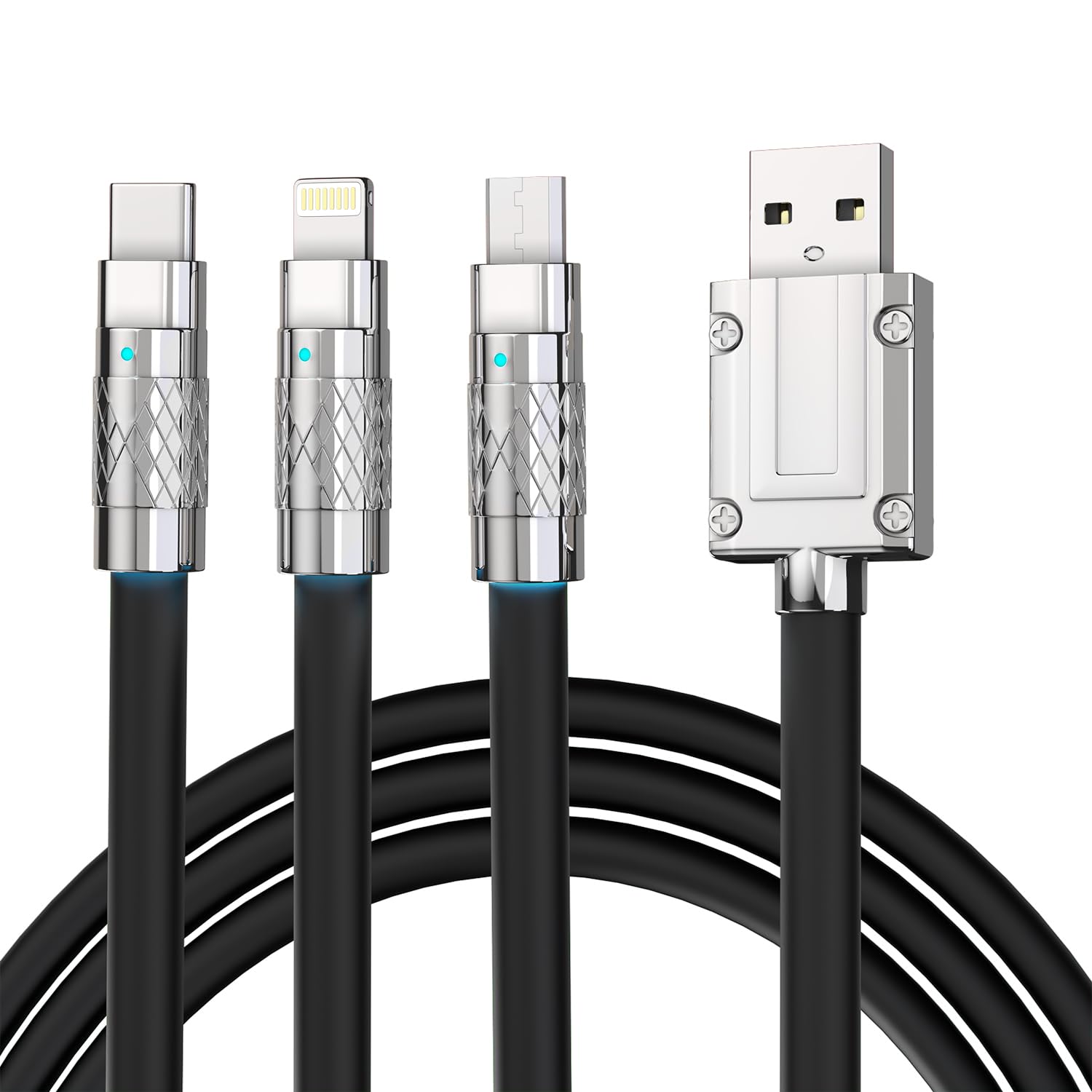3-in-1 Fast Charging Cable 120W – USB-C, Lightning & Micro-USB Portable Charger Cord for iPhone, iPad, Smartphones, Tablets (Black)