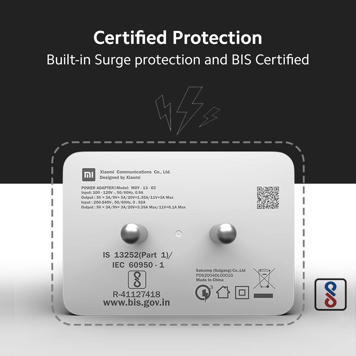 Mi Xiaomi 67W Fast Charger Combo with Qualcomm Quick Charge 3.0 + USB-C 6A Fast Charging Cable – Compatible with Mobile, Laptop & Power Bank (White)