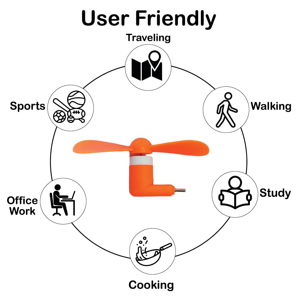 Mini Type-C USB Portable Fan – Compact & Lightweight Cooling Solution (White, Blue, Pink, Green, Black, Orange)